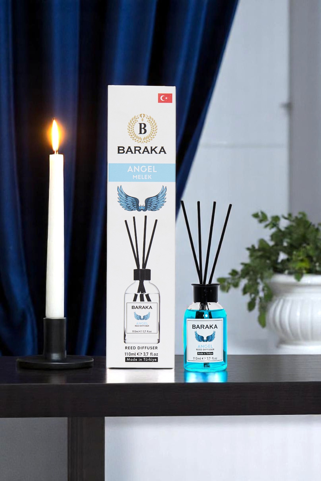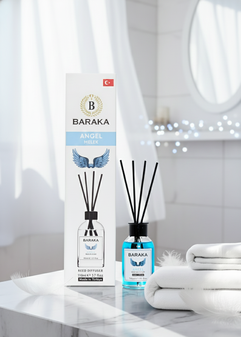 Baraka 110 ml Angel Çubuklu Oda Kokusu, tatlı, yumuşak ve büyüleyici Angel aromasıyla yaşam alanlarınıza zarif, huzur verici ve çekici bir atmosfer kazandırır. Fiber çubukları sayesinde kokuyu dengeli şekilde yayar, uzun süre kalıcıdır ve şık tasarımıyla her dekorasyona uyum sağlar.