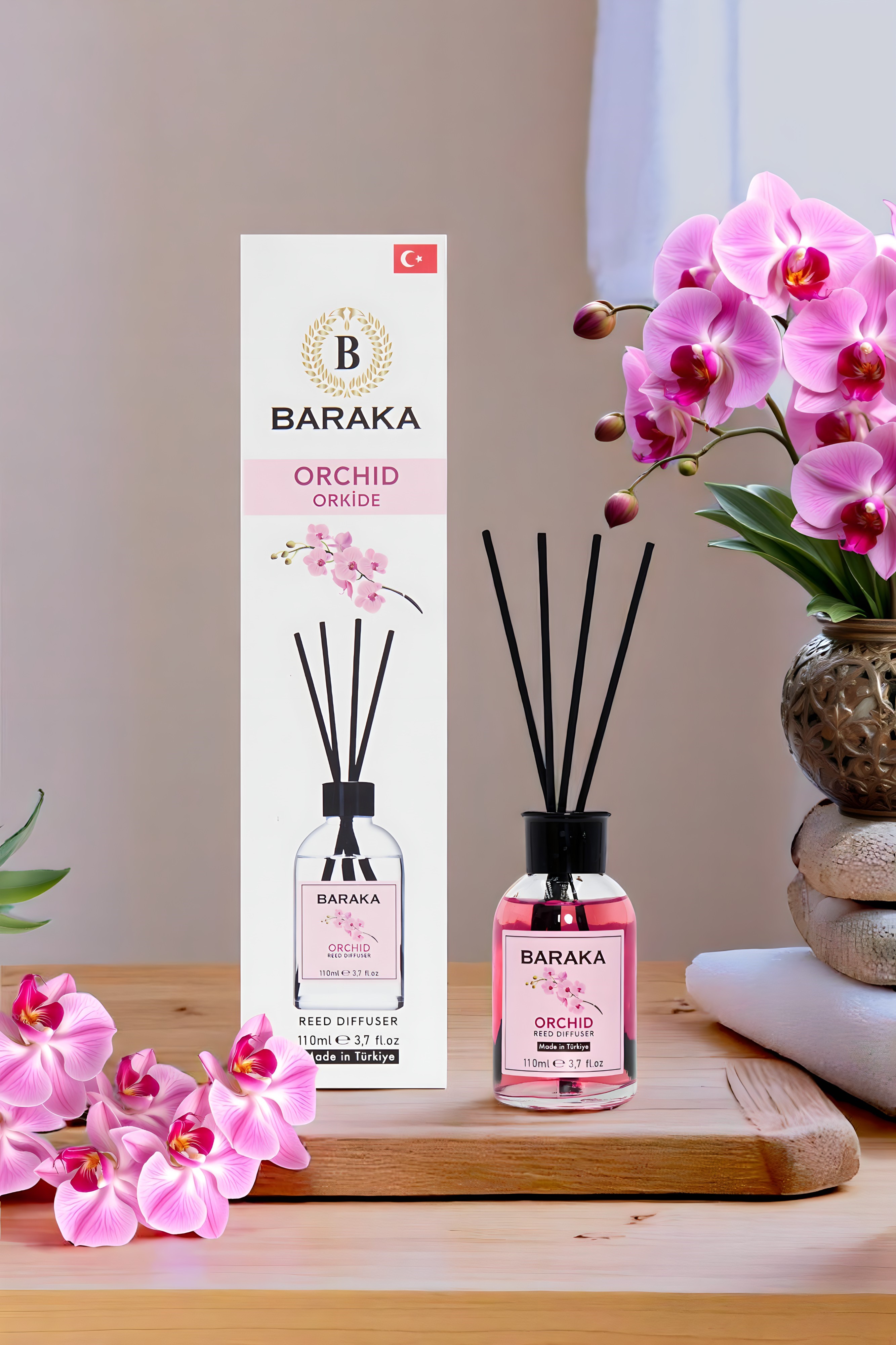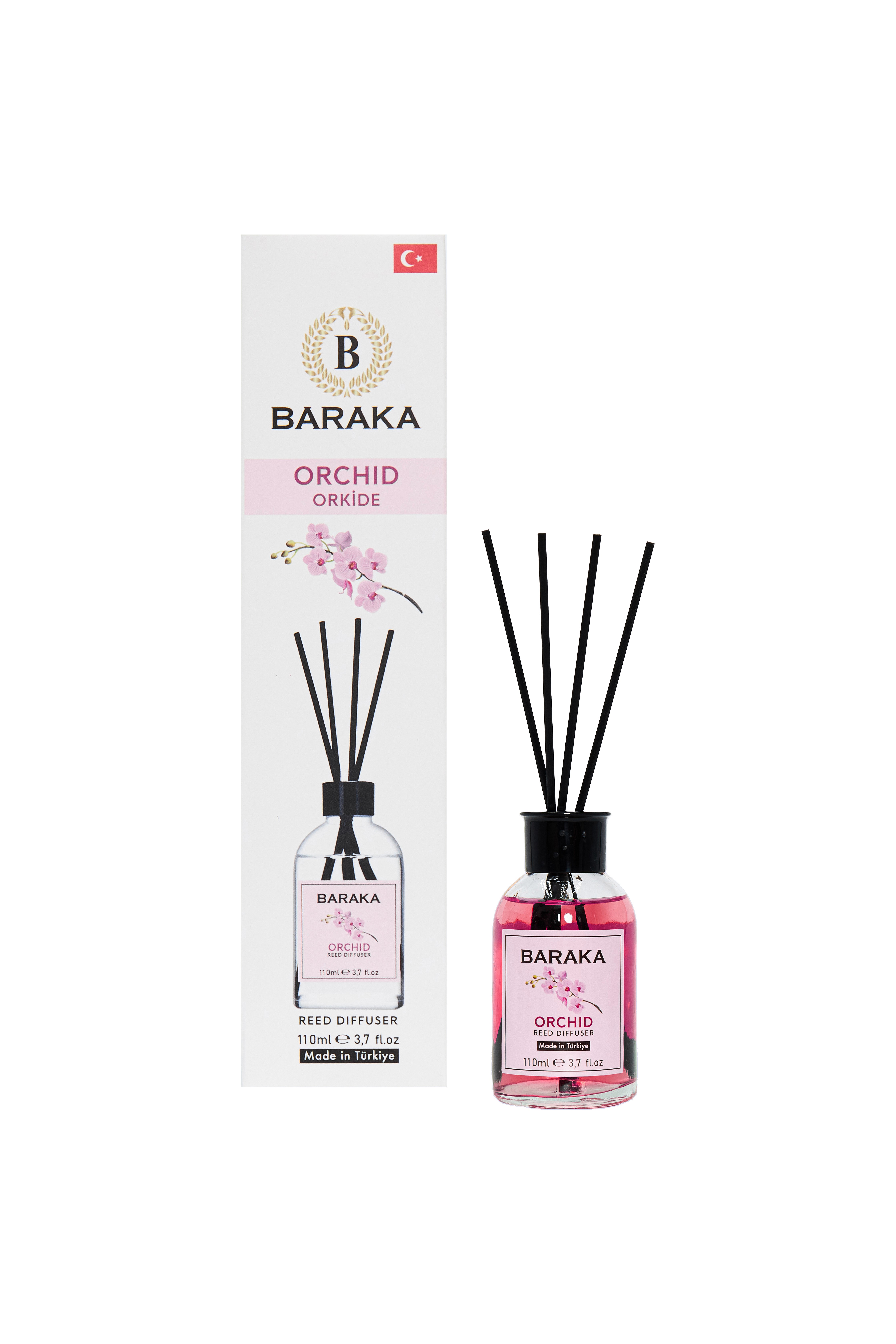 Baraka 110 ml Orkide Çubuklu Oda Kokusu, zarif ve tatlı orkide aromasıyla yaşam alanlarınıza ferah, huzur verici ve sofistike bir atmosfer kazandırır. Fiber çubukları sayesinde kokuyu dengeli şekilde yayar, uzun süre kalıcıdır ve şık tasarımıyla her ortama uyum sağlar.