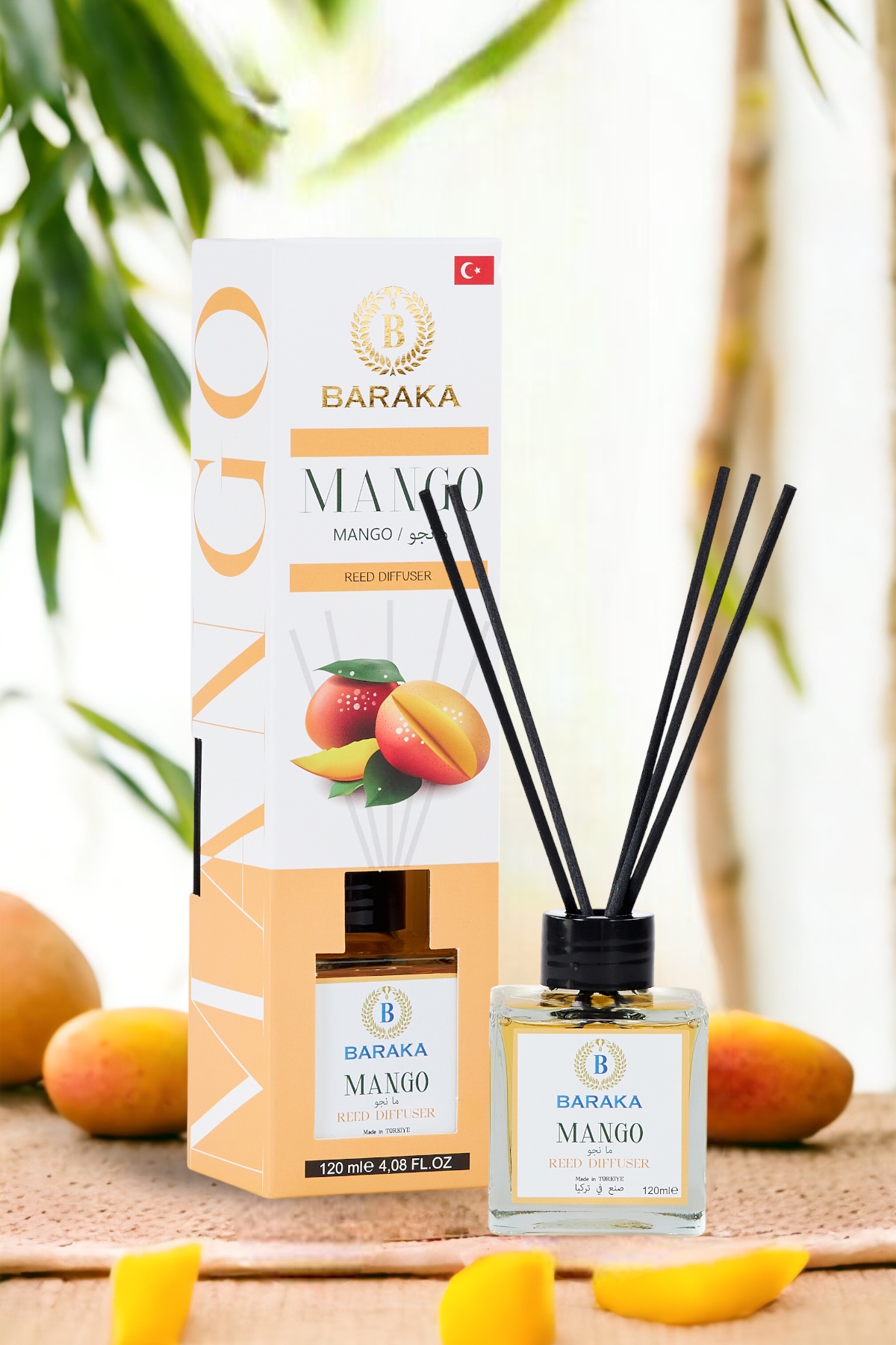 Baraka 120 ml Mango Çubuklu Oda Kokusu, tropikal ve tatlı mango aromasıyla yaşam alanlarınıza ferah, neşeli ve enerjik bir atmosfer kazandırır. Fiber çubukları sayesinde kokuyu dengeli şekilde yayar, uzun süre kalıcıdır ve şık tasarımıyla her ortama uyum sağlar.