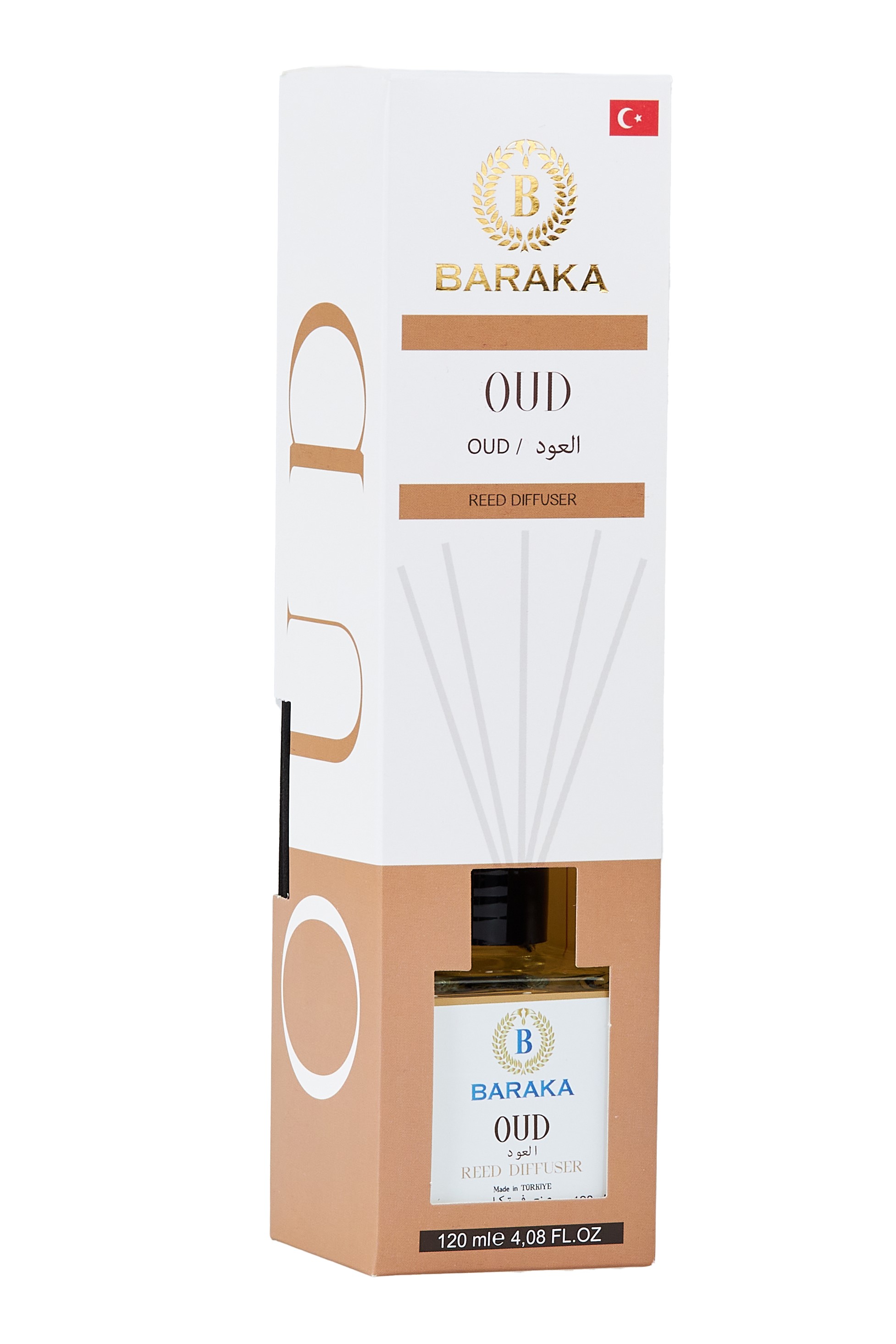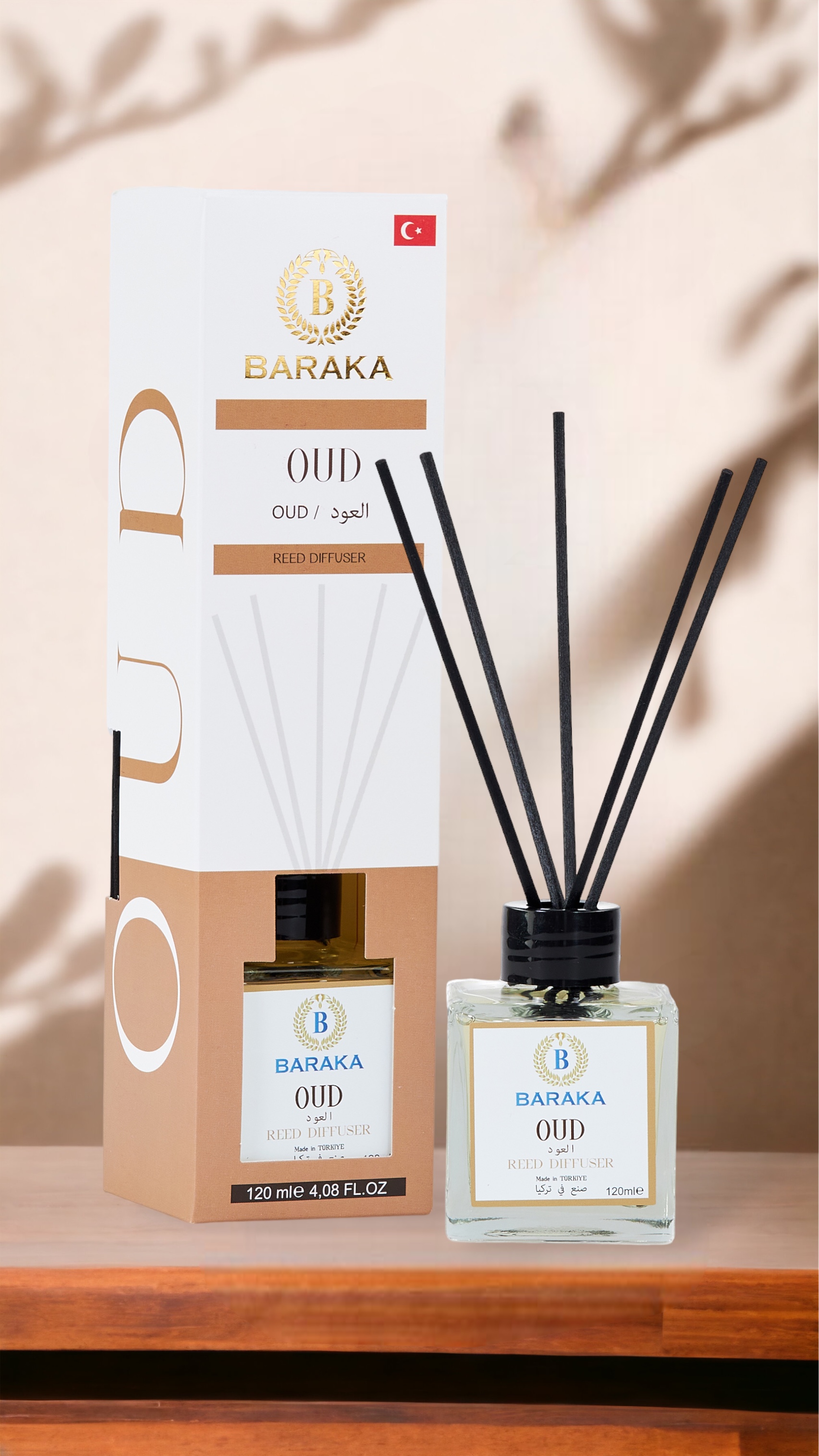 Baraka 120 ml Oud Çubuklu Oda Kokusu, derin ve sofistike oud aromasıyla yaşam alanlarınıza lüks, sıcak ve etkileyici bir atmosfer kazandırır. Fiber çubukları sayesinde kokuyu dengeli şekilde yayar, uzun süre kalıcıdır ve şık tasarımıyla her ortama uyum sağlar.